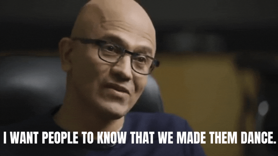 "I want people to know that we made them dance," said iconic Microsoft CEO Satya Nadella in an interview yesterday, when asked about competing with Google.