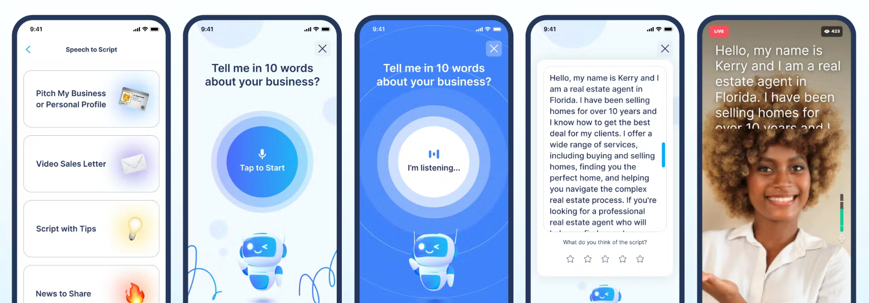 - Voice to Script AI Magic Writer creates video scripts from brief voice prompts to suit varied business and content marketing needs.