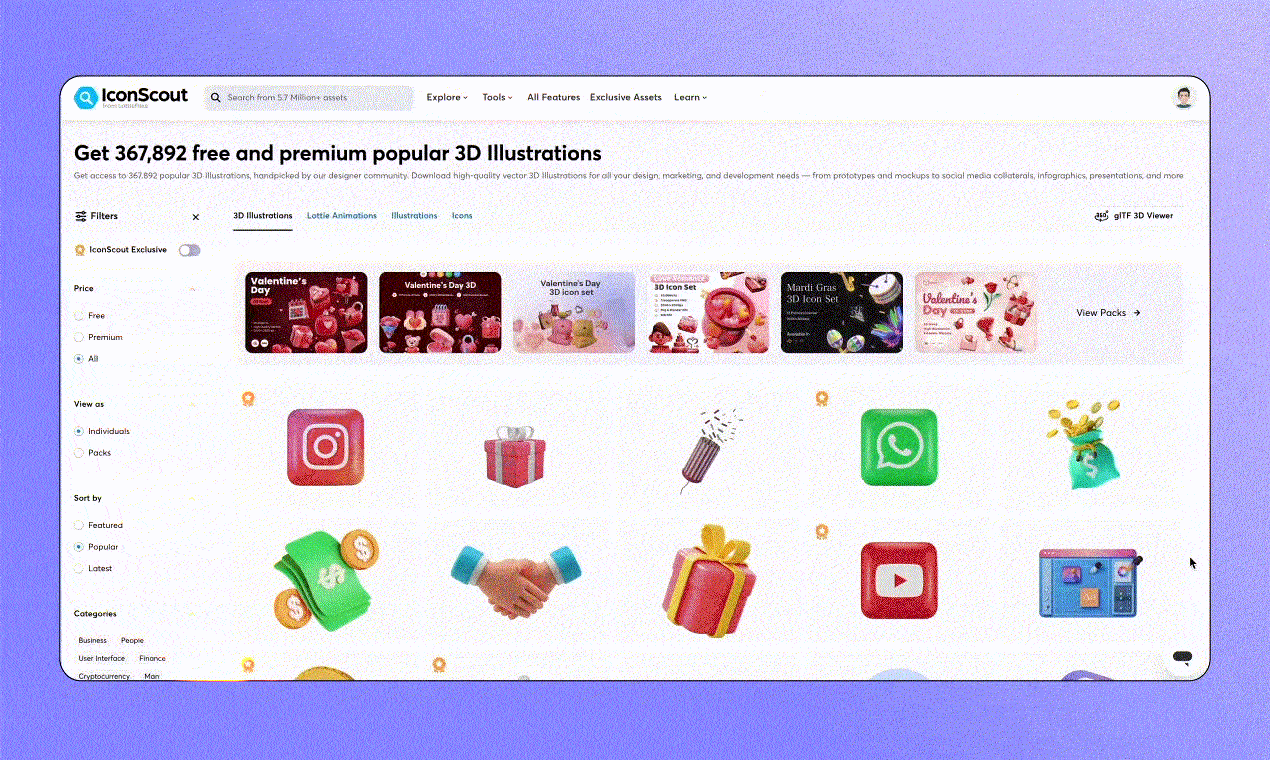 - 3D illustrations by IconScout is a new library of 141,000 customizable 3D assets.
