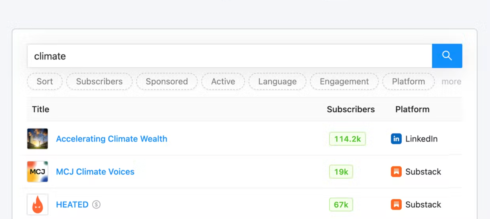 - Reletter lets makers search across 1.3m+ email newsletters to compare subscriber numbers and traffic estimates and get contact info for potential partnerships.