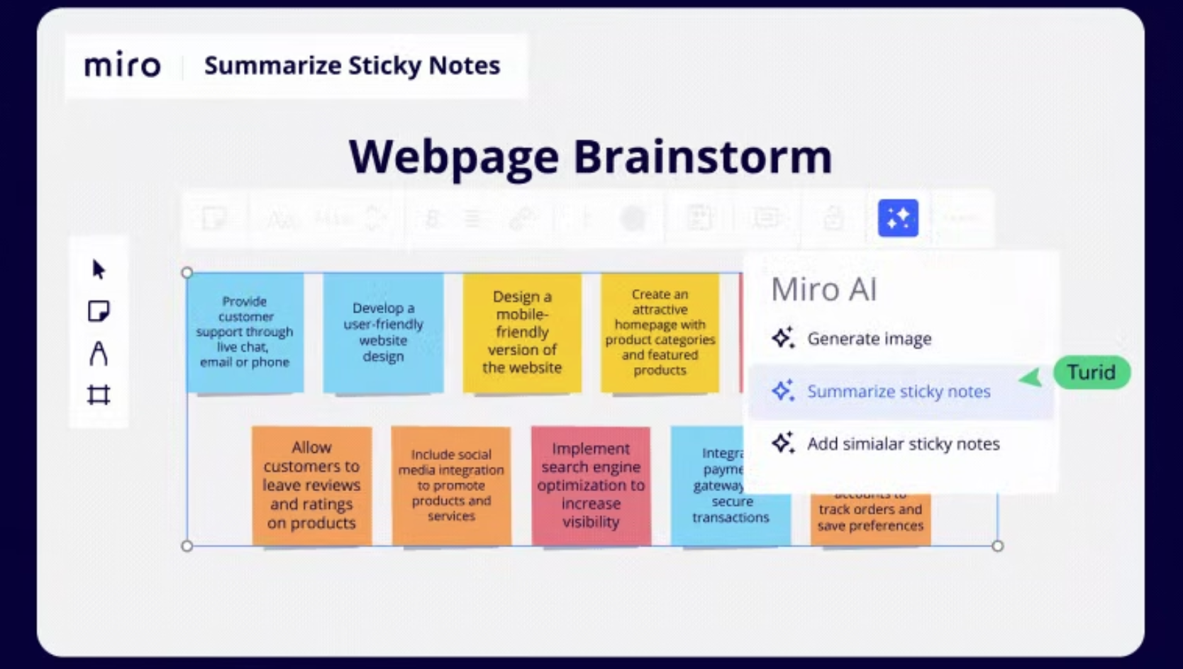- Miro AI adds text and idea generation, summarization, and clustering features to reduce manual work in their visual collaboration software.