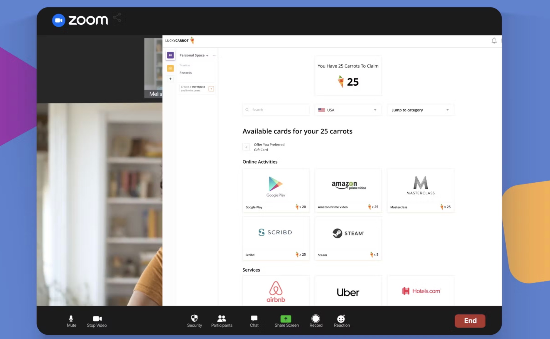 - Lucky Carrot app for Zoom is an integration teams can use to give feedback, support, and monetizable kudos during live calls.