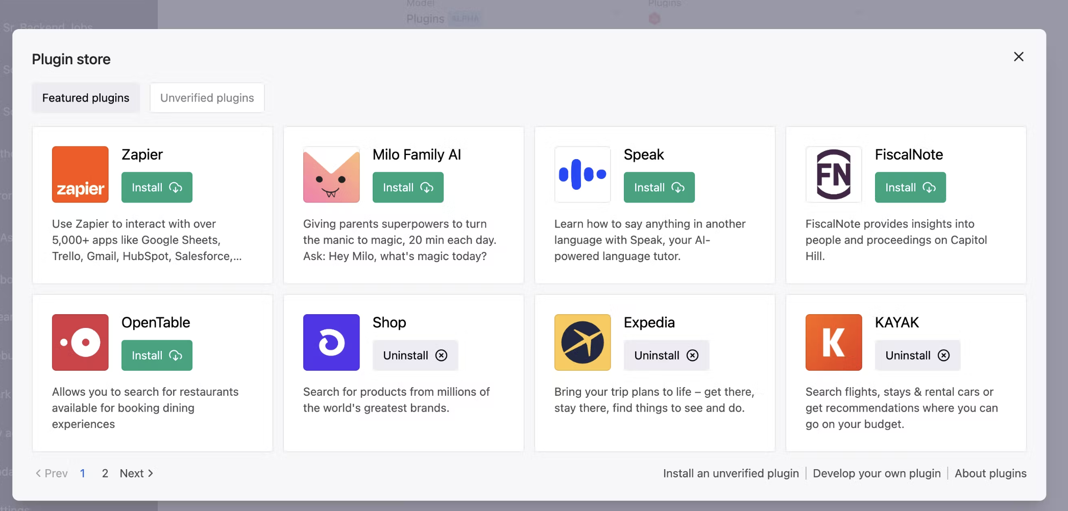 OpenAI says it's rolling out access to a "small set of users" first before embarking on a wider rollout. As it stands right now, there are 11 third-party plugins for users to play around with, and OpenAI has provided some of their own plugins as well.