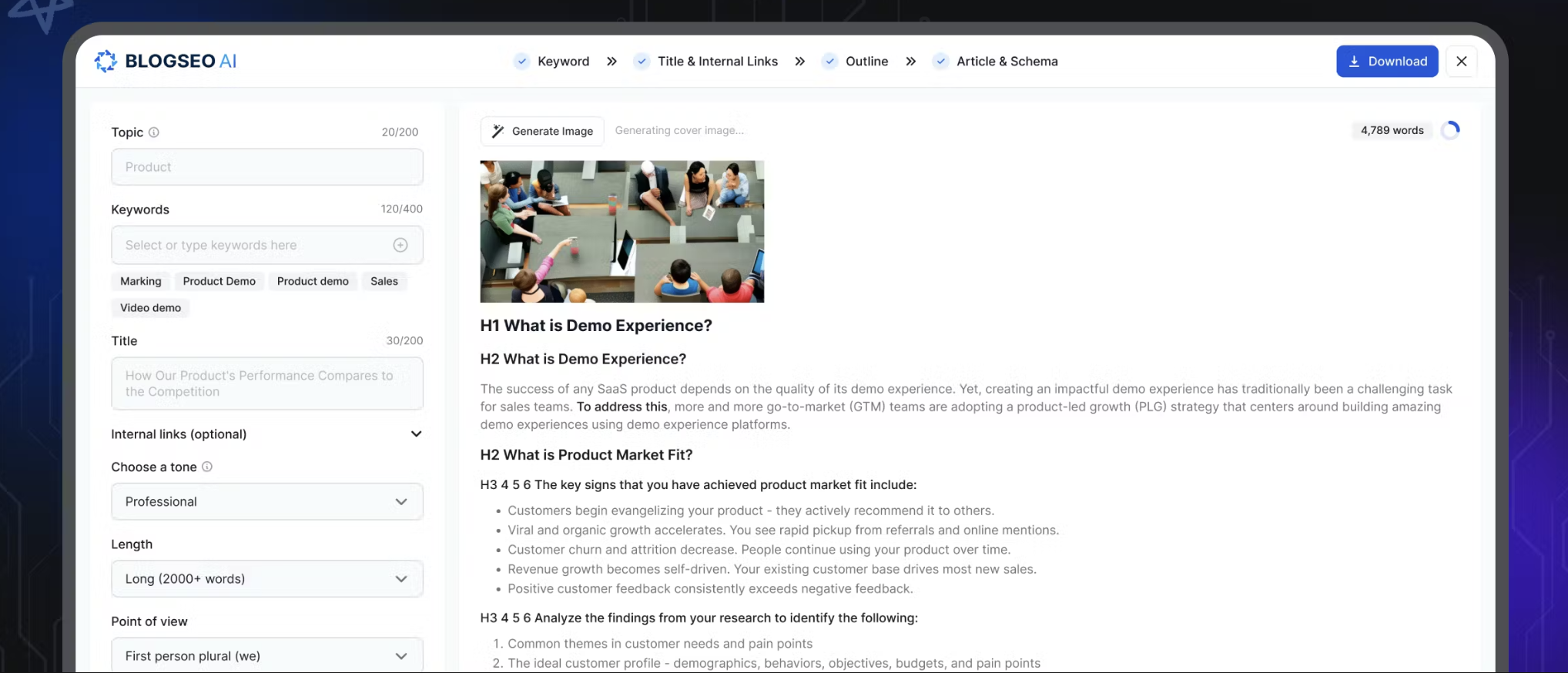 BlogSEO AI generates SEO-friendly long-form content for your blog.
