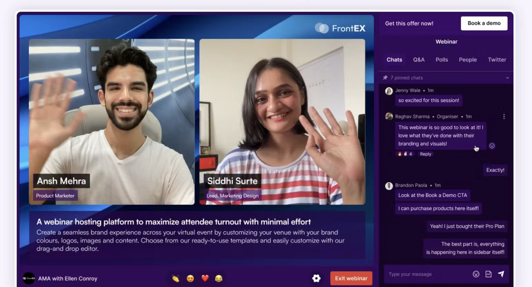 - Zuddl Webinars runs scalable webinar programs, builds no-code landing pages, and offers native integrations.