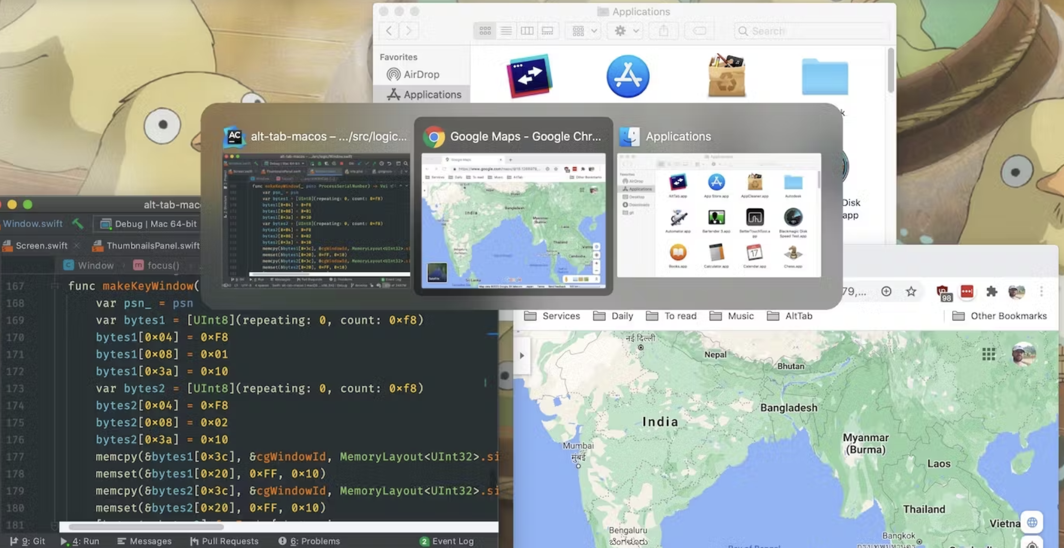 AltTab takes the beloved Windows alt-tab switching function and ports it to Mac.