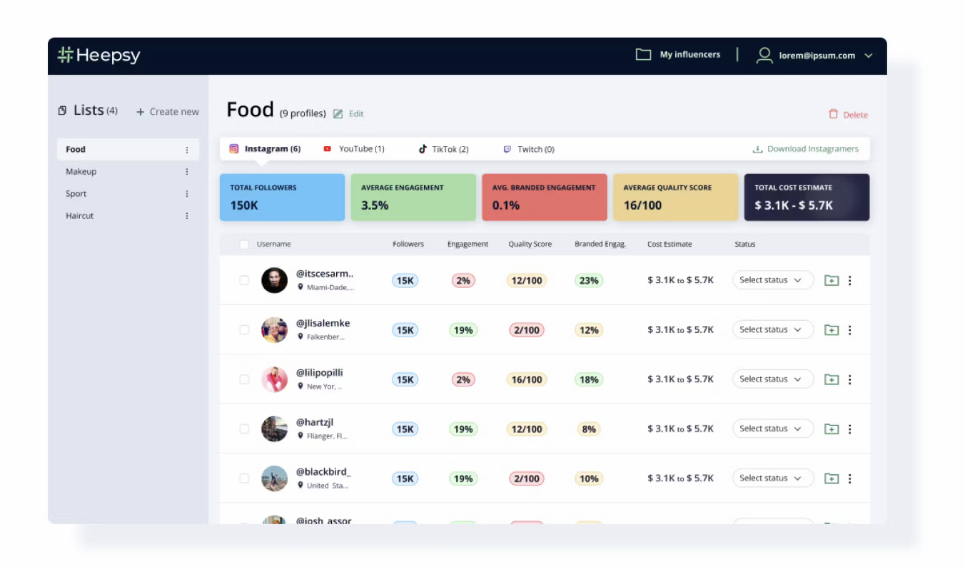 - Heepsy 3.0 discovers, filters, and analyzes relevant influencers around the world.