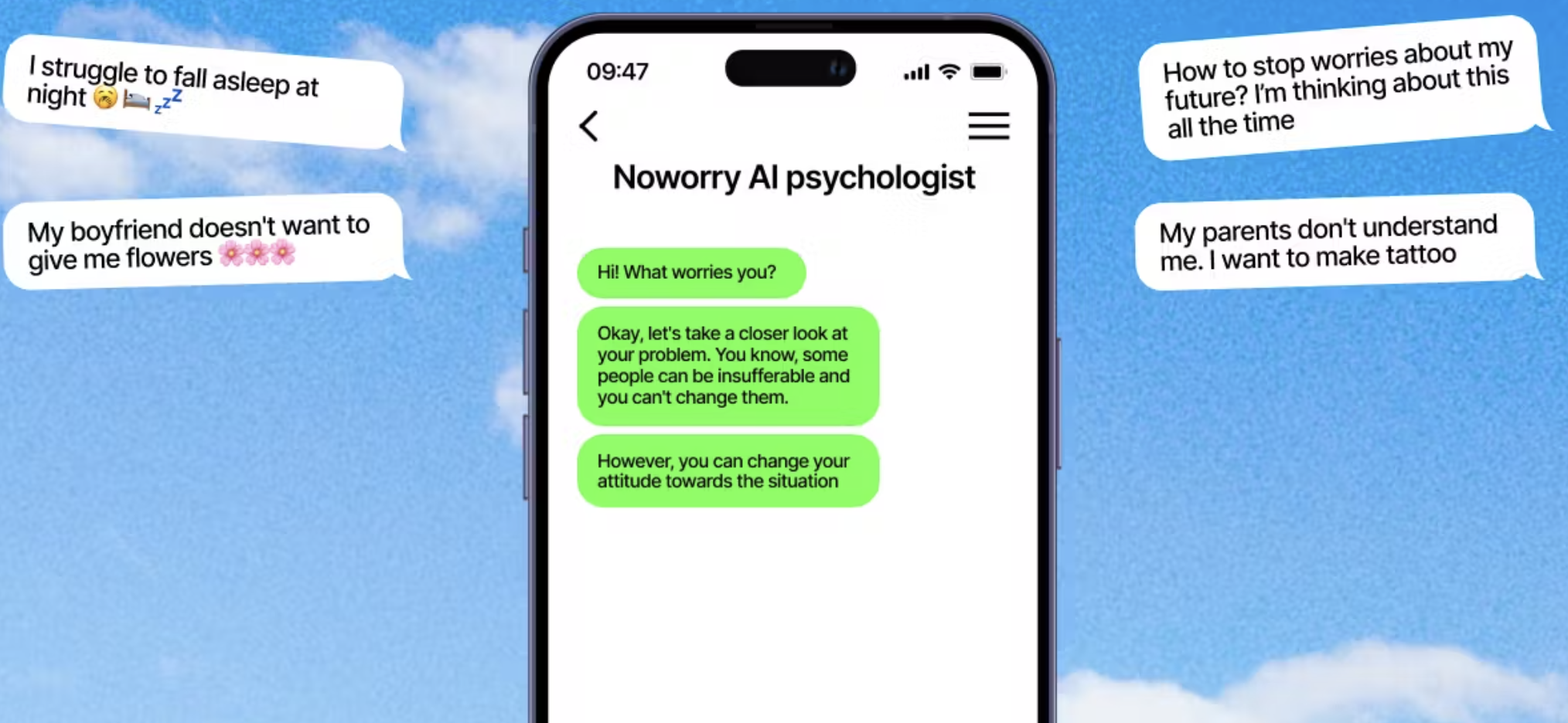 Noworry AI Psychologist helps you deal with stress and anxiety with AI.